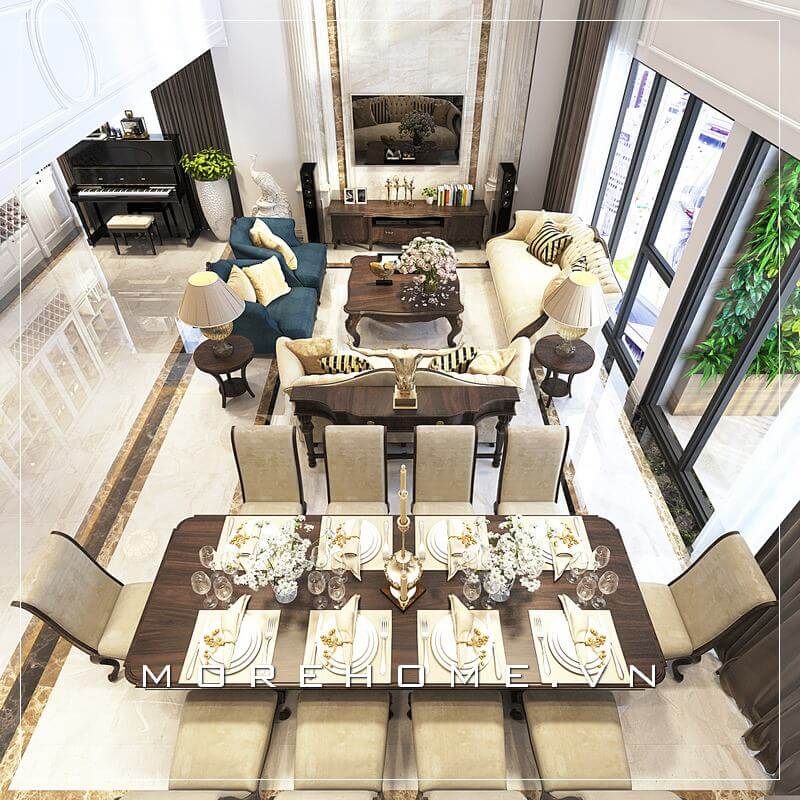 Thiết kế nội thất tân cổ điển cùng cách trang trí phá cách từ tường, trần, sàn đã tạo nên vẻ đẹp sang trọng, đẳng cấp cho không gian biệt thự, nhà phố.