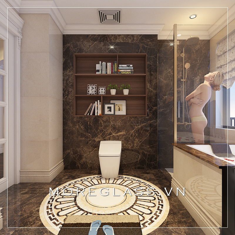 Ngoài ra, sử dụng các vật liệu tự nhiên như đá cẩm thạch hay gỗ tự nhiên cũng là một cách để nâng tầm vẻ đẹp của phòng tắm. Những bề mặt này không chỉ mang lại sự sang trọng mà còn tạo cảm giác ấm áp, gần gũi. Kết hợp với ánh sáng vàng dịu nhẹ sẽ tạo ra một không gian thư giãn hoàn hảo, khiến bạn muốn dành nhiều thời gian hơn trong căn phòng này. Thêm vào đó, việc lựa chọn các thiết bị vệ sinh cao cấp và tinh tế sẽ làm nổi bật phong cách sang trọng mà bạn đang hướng đến.